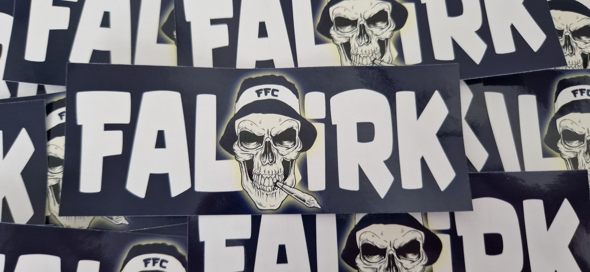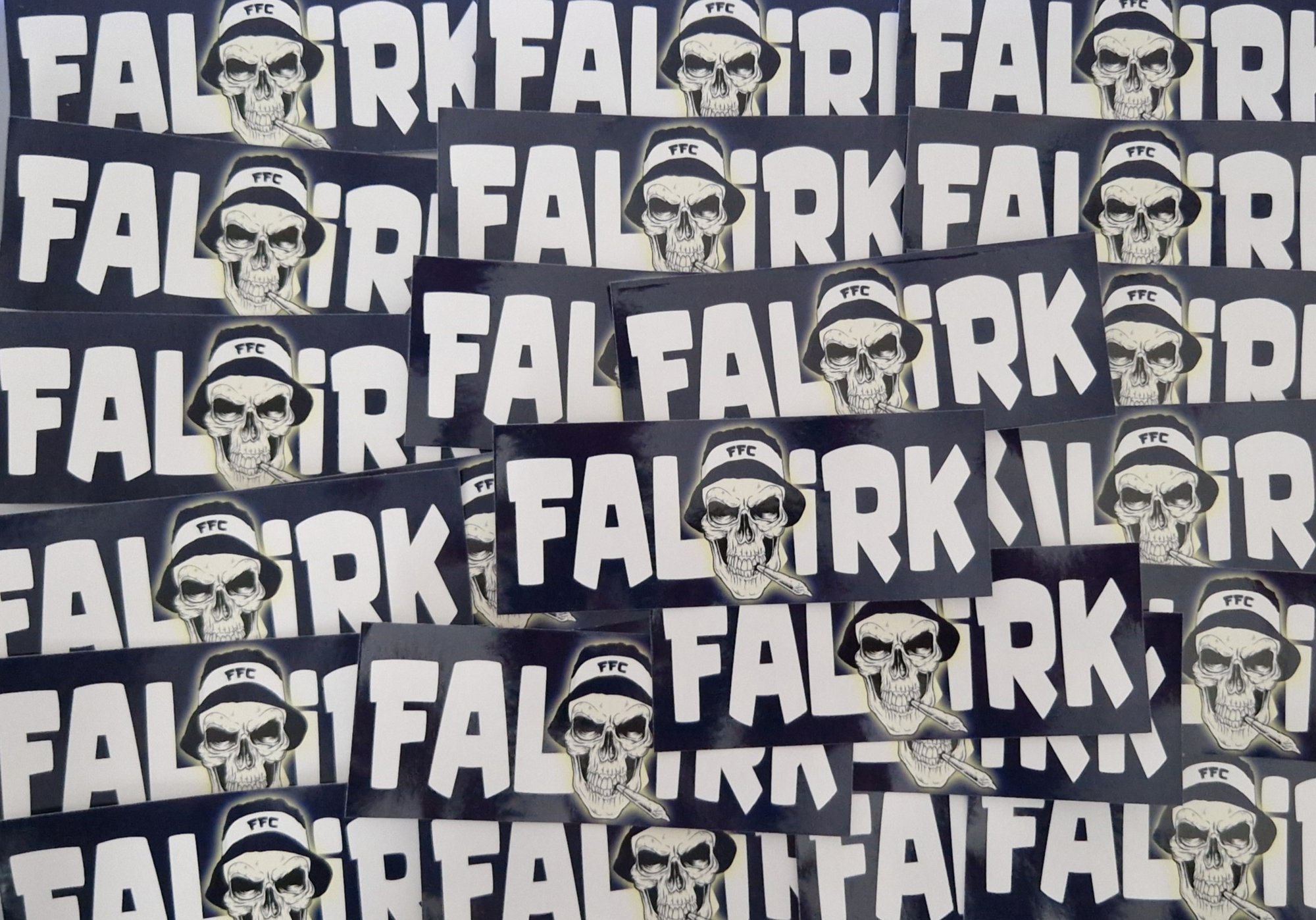 Pack of 25 13x5cm Falkirk Skull Smoking Football/Ultras Stickers.