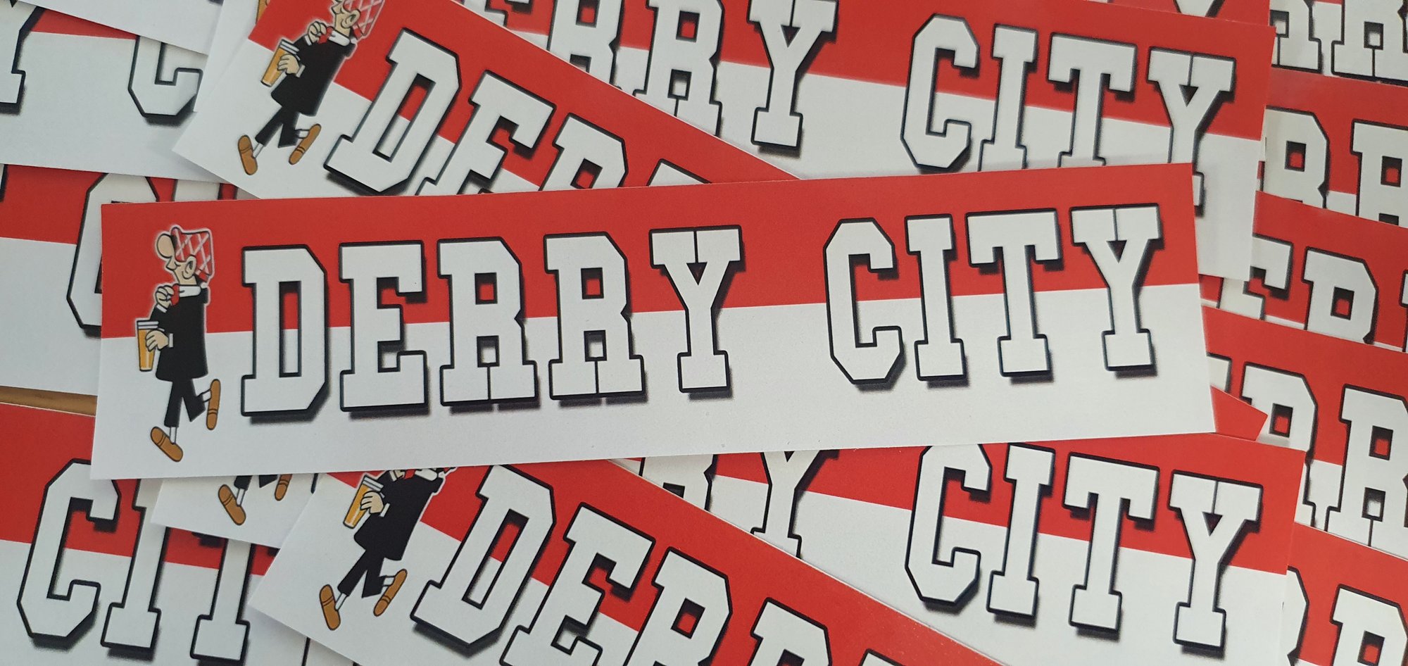 Pack of 25 16x4cm Derry City Football/Ultras Stickers.