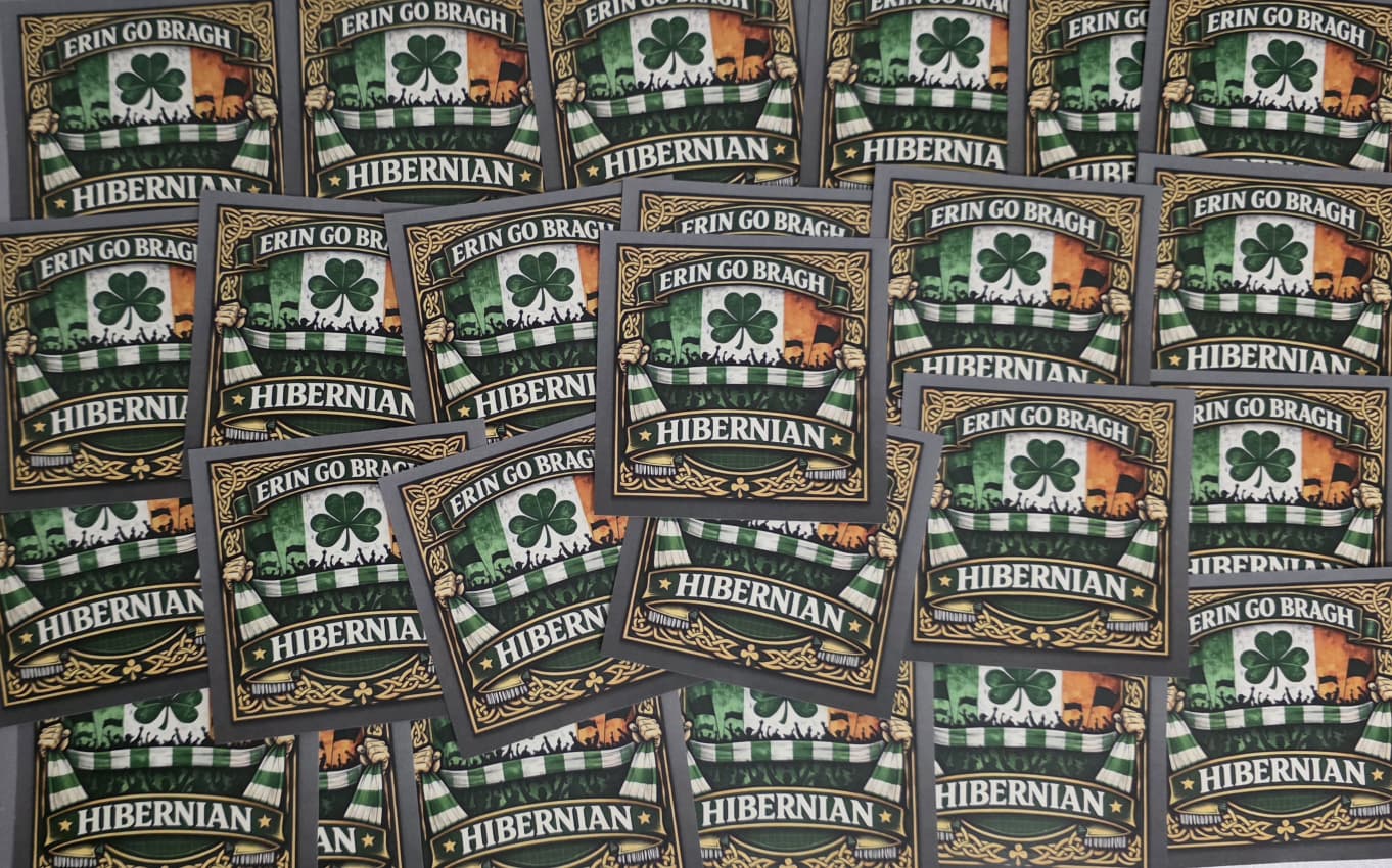 Pack of 25 7x7cm Hibs, Hibernian Erin Go Bragh Football/Ultras Stickers.