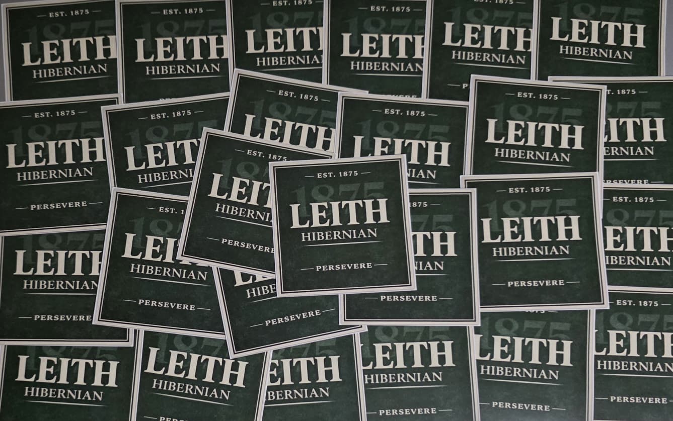 Pack of 25 7x7cm Hibs, Hibernian Leith Persevere Football/Ultras Stickers.
